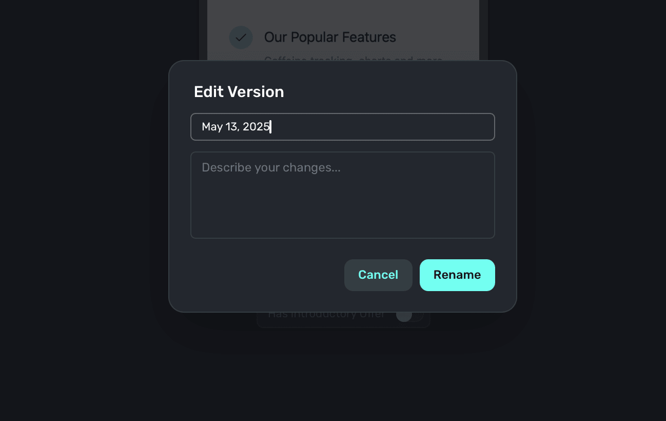 Click on any entry to rollback your paywall to that version. Additionally, you can rename and add more context about any entry by clicking the pencil icon: