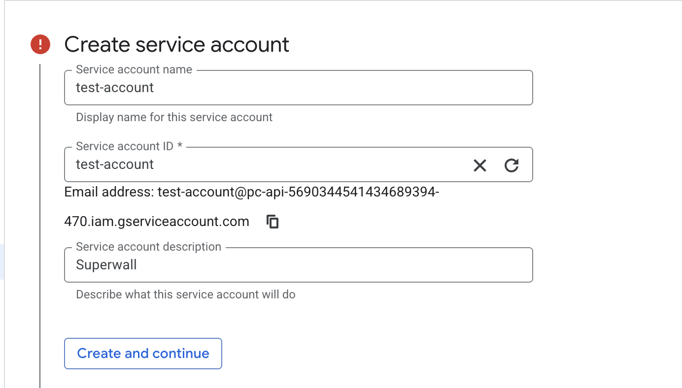- Paste in the email address of the service account you created. You'll find this under the "Details" tab of your service account.