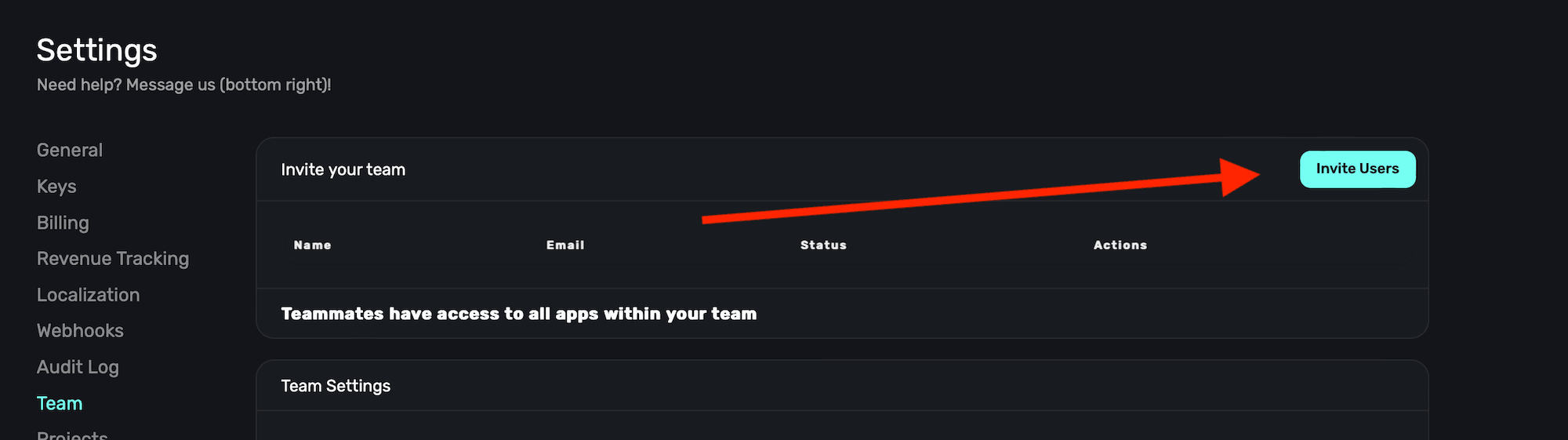 In the Team section within Settings, you can view and edit your Superwall team: