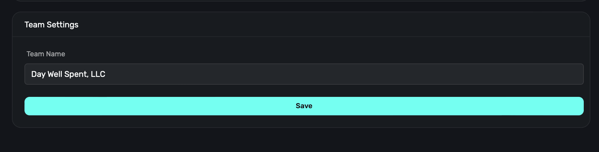 To rename your team, enter in a new value name under the Team Name section, and click the Save button: