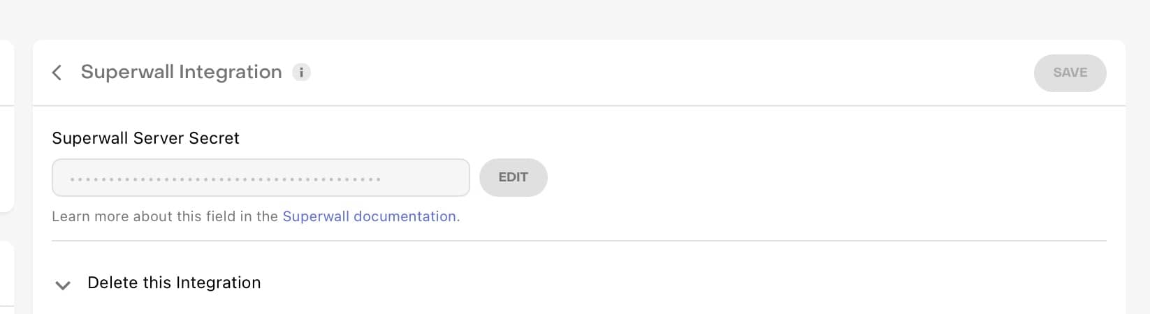 Finally, in RevenueCat, use the token in their integration settings for Superwall:
